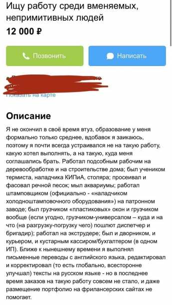На популярном веб-сайте Авито можно встретить много страждущих в поисках работы. Но не многим из них улыбнется фортуна. Сами смотрите, почему...