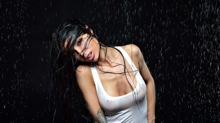 Красивая девушка в мокрой рубашке