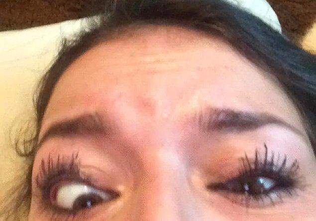 8. Эта девушка перестаралась и наклеила фальшивую пару не только на ресницы, но и на веки.