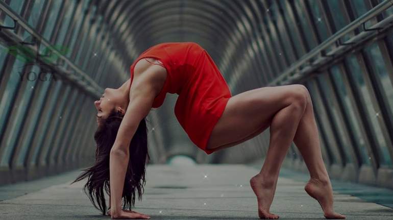 Девушка красавица мостик йога