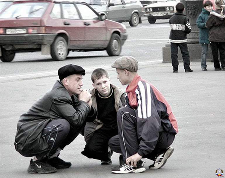 Гопота на корточках