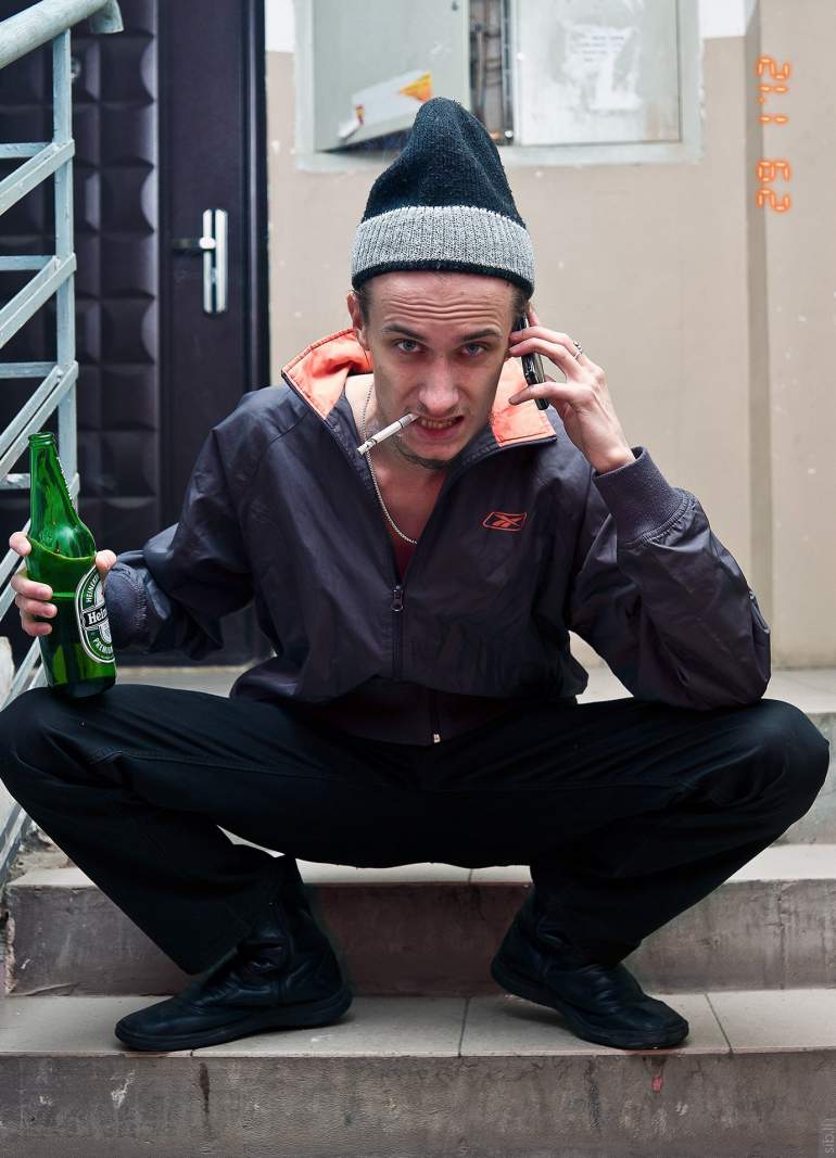 Гопник на корточках
