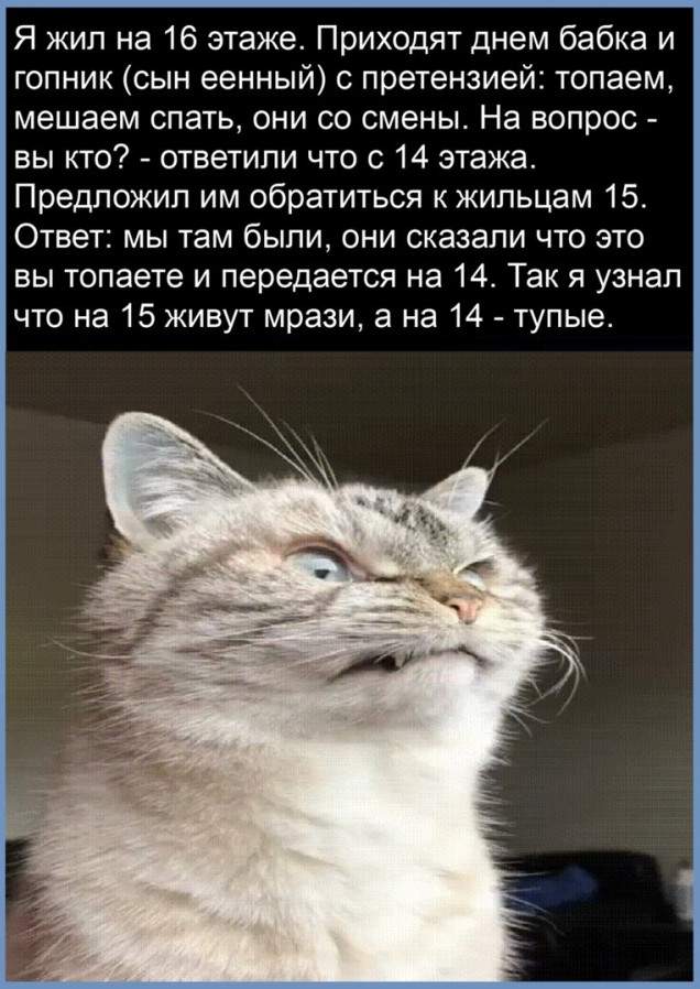 Новые приколы и картинки с юмором на 17.06.22 Приколы 17-06-2022, 12:44 322 Ура! Пятница! Прикольные и смешные картинки и отборные анекдоты. Этот долгожданный день за которым следуют долгожданные выходные выходные.