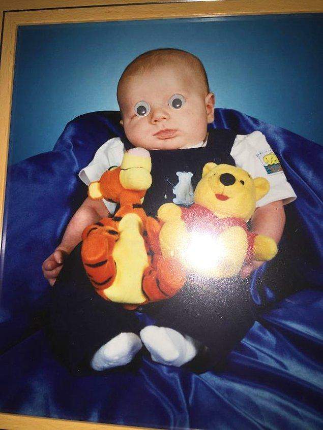 5. "Пять лет назад я приклеил мультяшные глаза к фотографии моего брата, когда он был еще младенцем. Никто ничего не заметил".