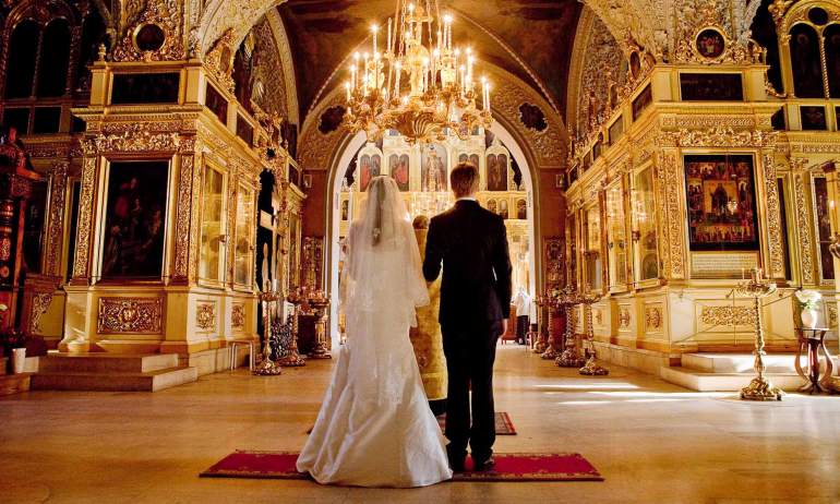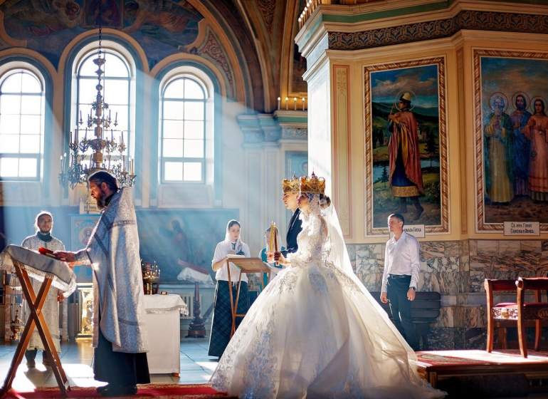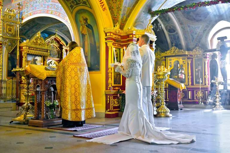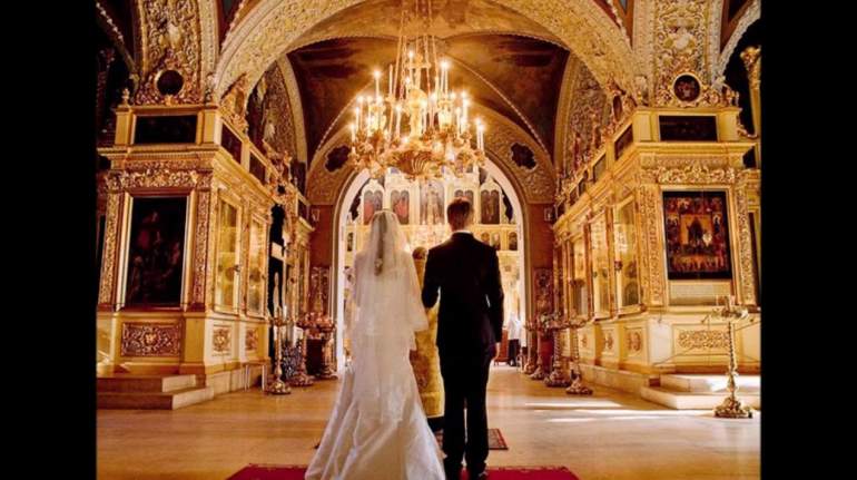 Прекрасное венчание в церкви прекрасно увенчанная Церковь