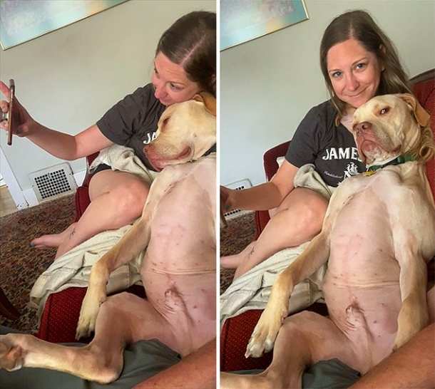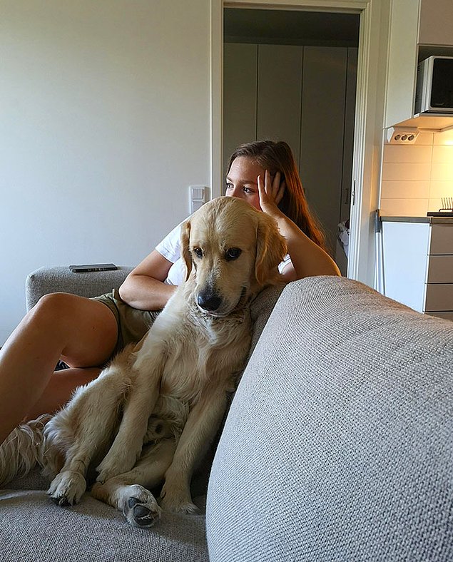 10. Изловил момент, когда моя девушка красавица делала селфи с нашей собакой. Его взшляд делает мне больно