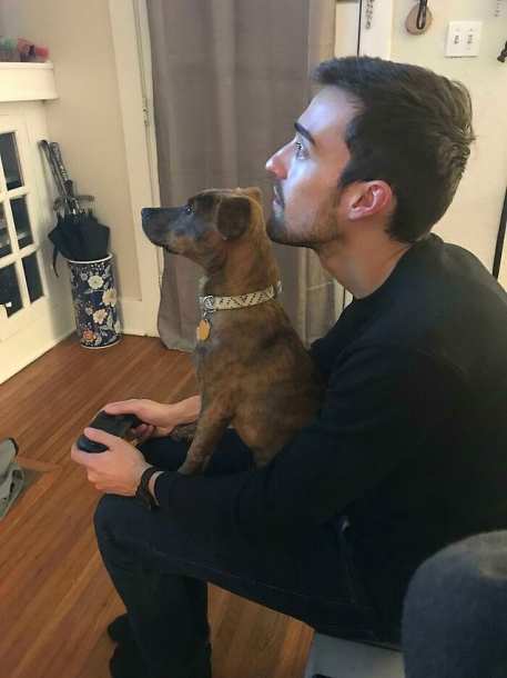 11. Так выглядит мой парень и собачка, когда он играет видео игры