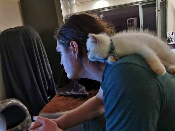 14. Вот мой наплечный котенок смотрит сериал с моим бойфрендом