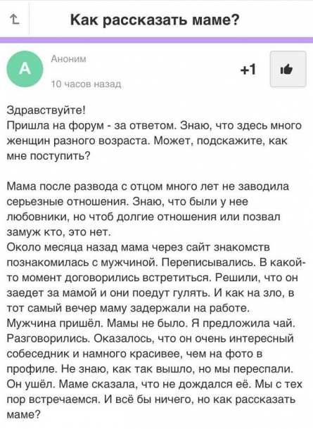 Девушки, также некие мужчины, рассказывают свои истории на женских форумах и в тематических группах социальных сетей, надеясь отыскать поддержки окружающих. Давайте узнаем, что все-таки их волнует, в продолжении.