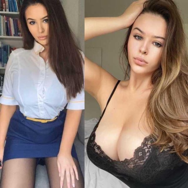 О, эти загадочные создания с неба! Подумай только, как они меняют свой облик, как кардинально и соблазнительно! В один миг - обольстительные и неприступные грезы, в другой - элегантные и строгие профессионалки, олицетворение уверенности и элегантности. Дома все сбрасывают, освобождают свою внутреннюю страсть и сверкают перед камерой во всей своей красе, позволяя себе быть совершенно откровенными. Но одни лишь немногие знают, какой огонек горит в их глазах на работе, под парадным костюмом. Взгляд, словно зовущий и при этом неприкосновенный. Такие вот сладкие противоречия, эротика и классика в одном лице! Так что, давай запрыгивать на борт этого сексуального рейса и наслаждаться этими двумя сторонами чарующих стюардесс. Ведь в конце концов, как гласит древняя мудрость: идеальное сочетание страсти и контроля - вот настоящая искусница в искусстве соблазна.