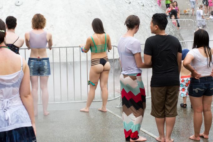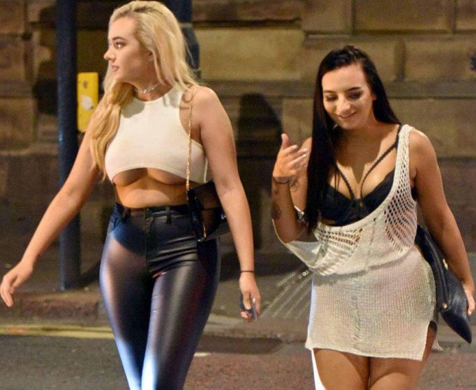 Девушки на улице задрали юбки и показали трусики.
