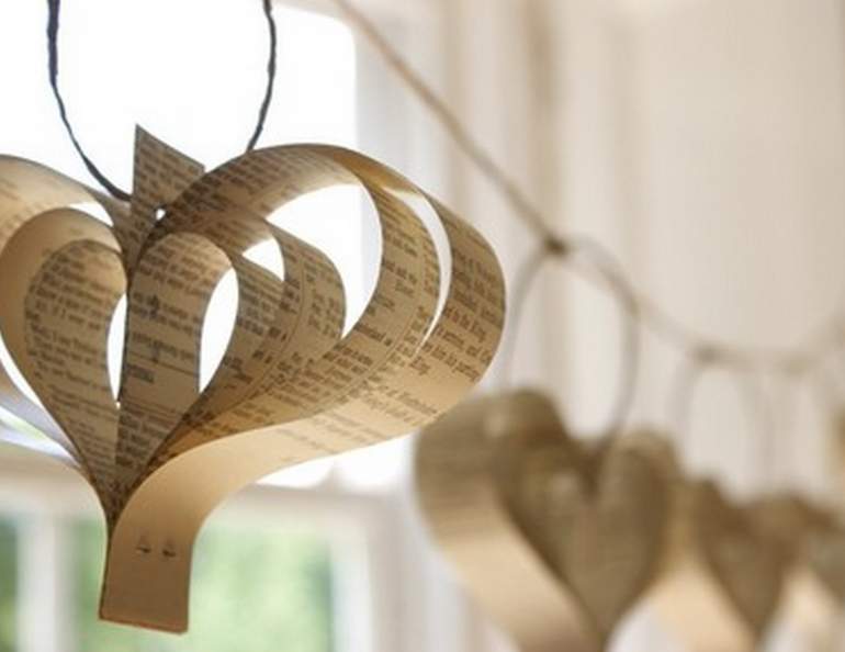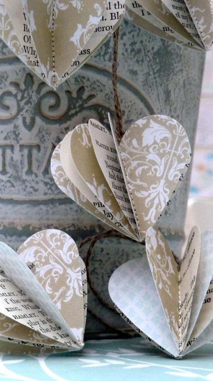 Украсить бумажные сердечки в винтажном