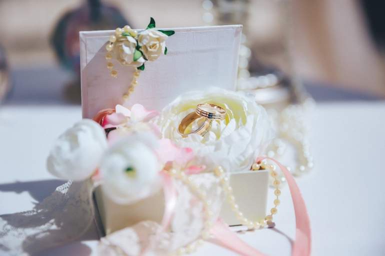 Свадебные кольца на пастельных тонах