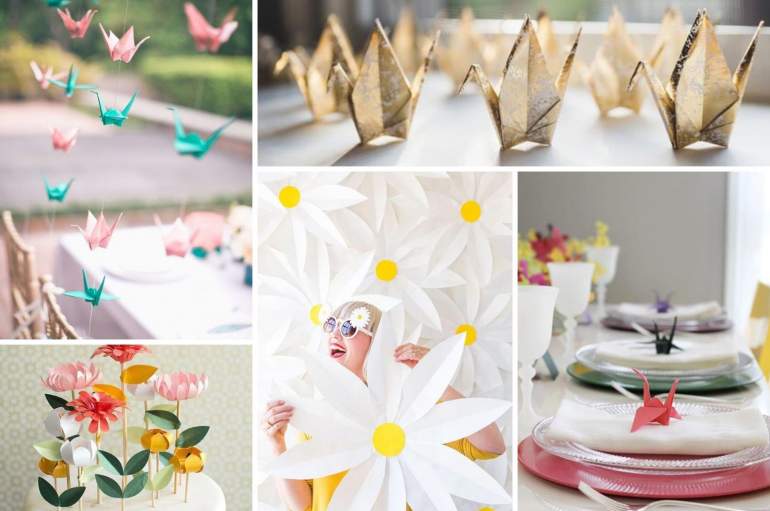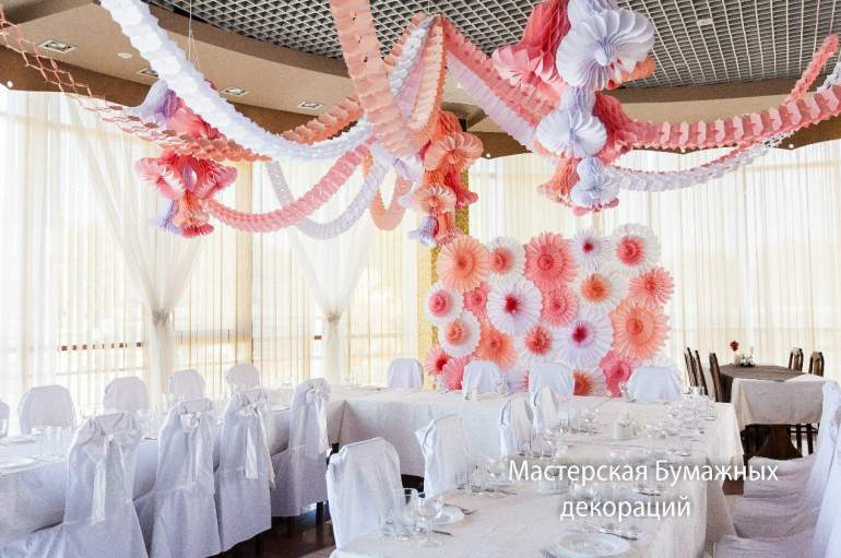 Бумажные цветы для декорации свадьбы