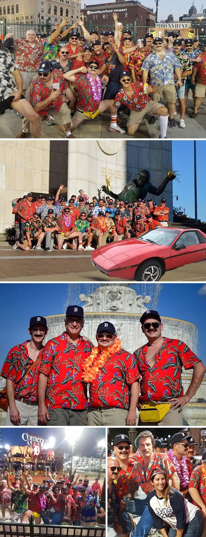 45 мужчин, одетых как Magnum PI из игры Tigers Game
