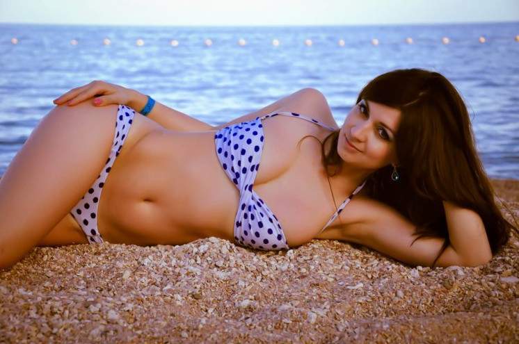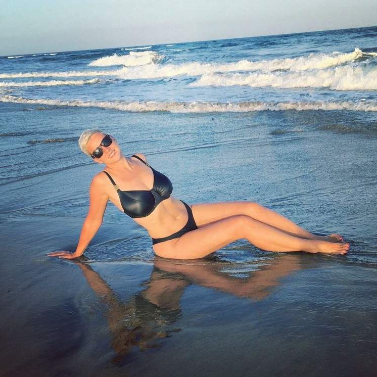 Helga Lovekaty в зеленоватом купальнике.