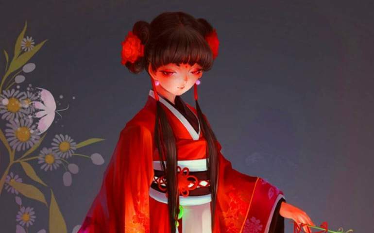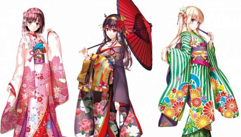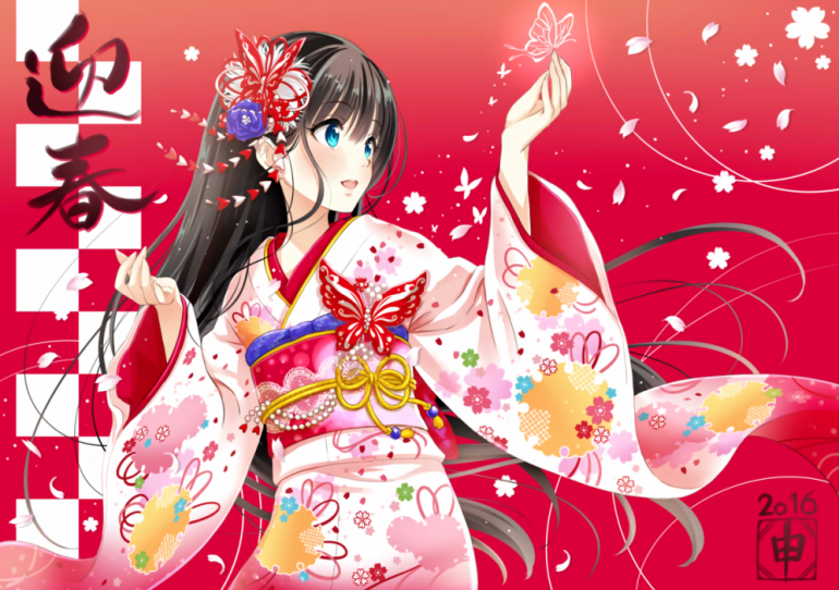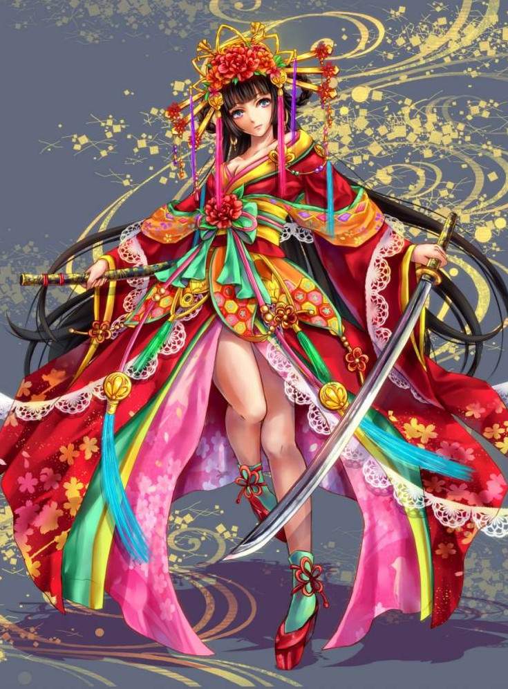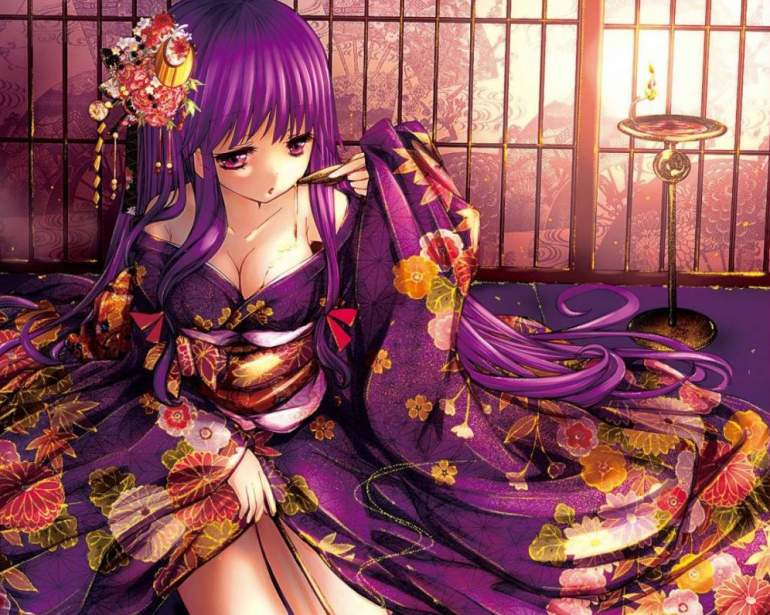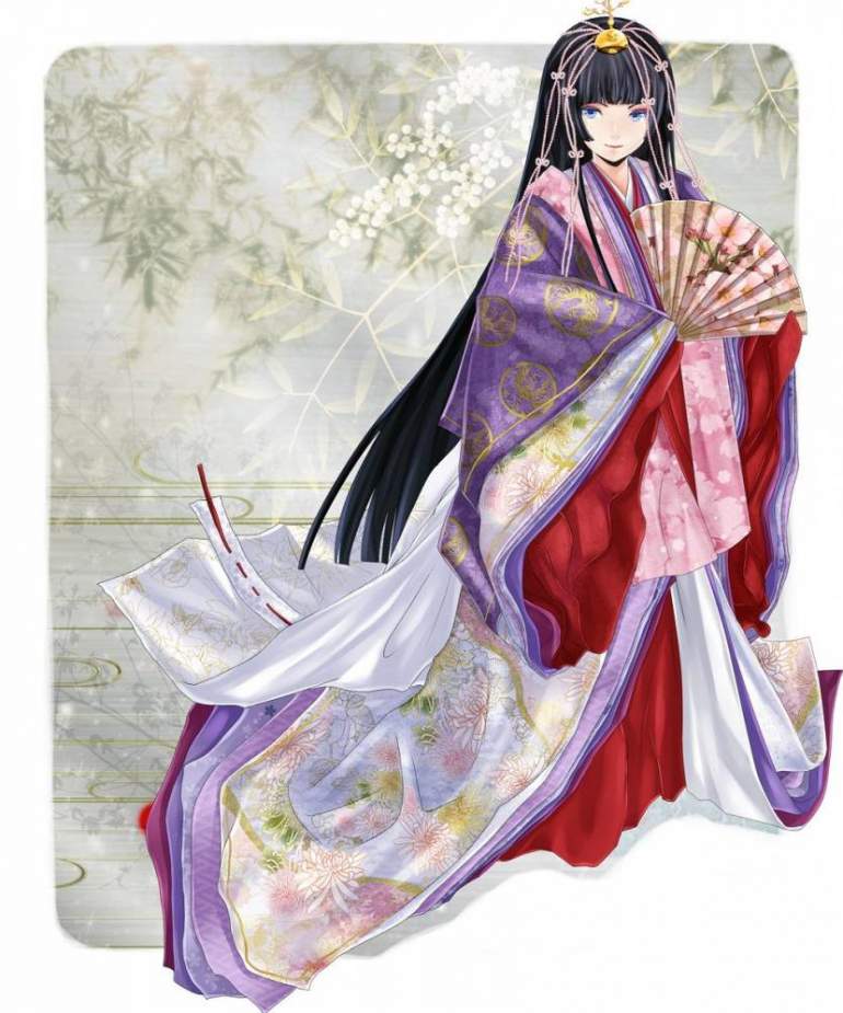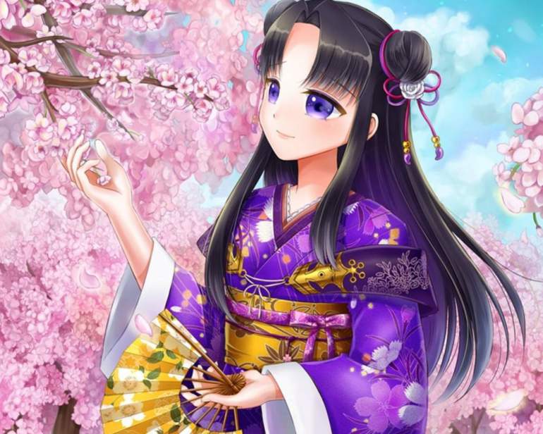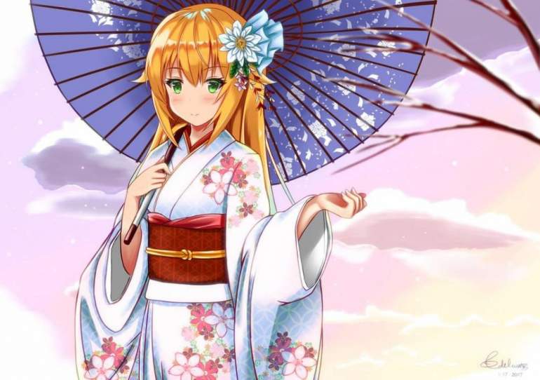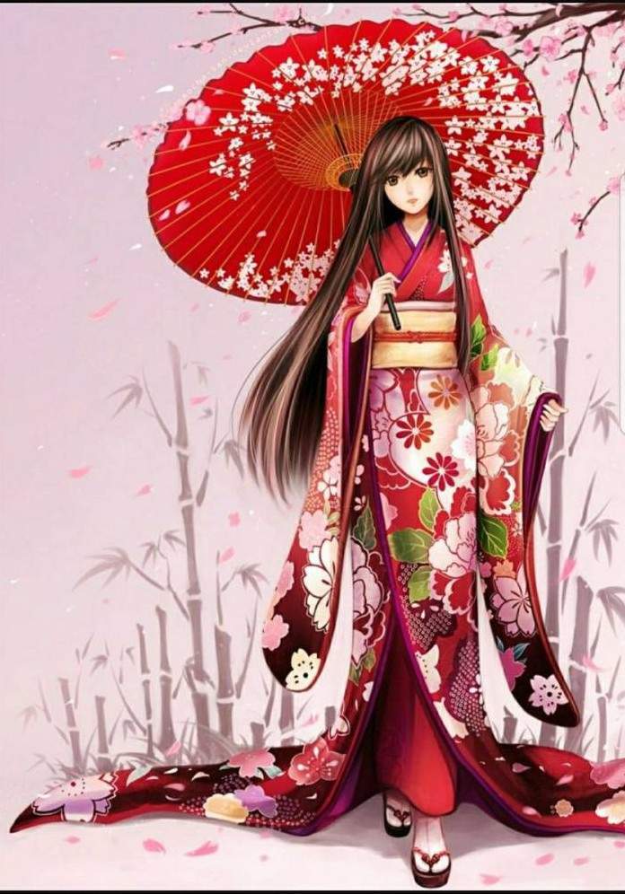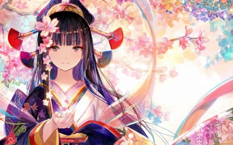 Картинки Аниме девушка красавица в кимоно с маленькими волосами.