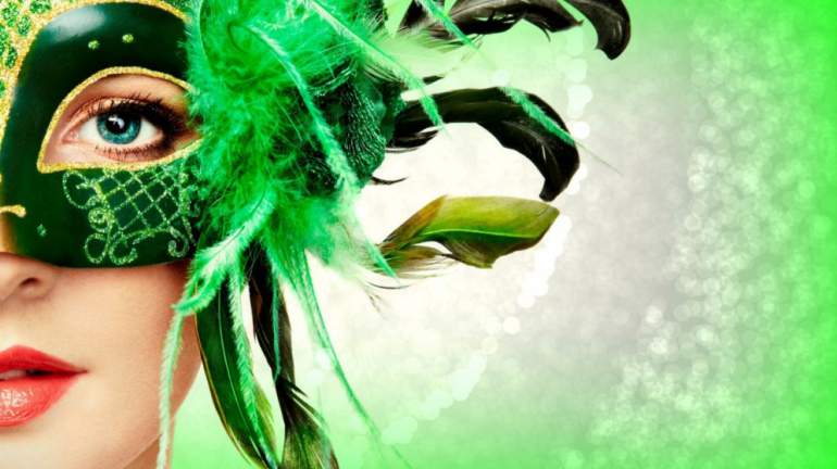 Девушка красавица в маскарадной маске.