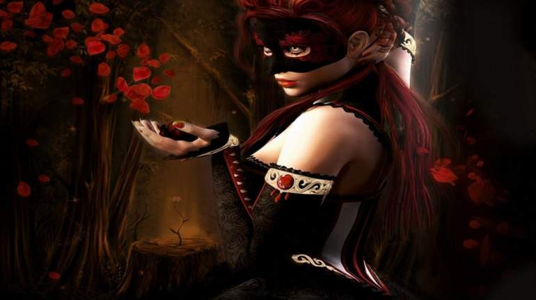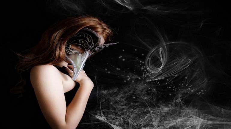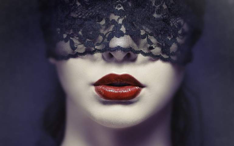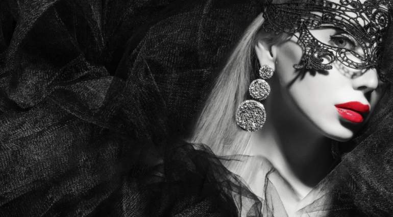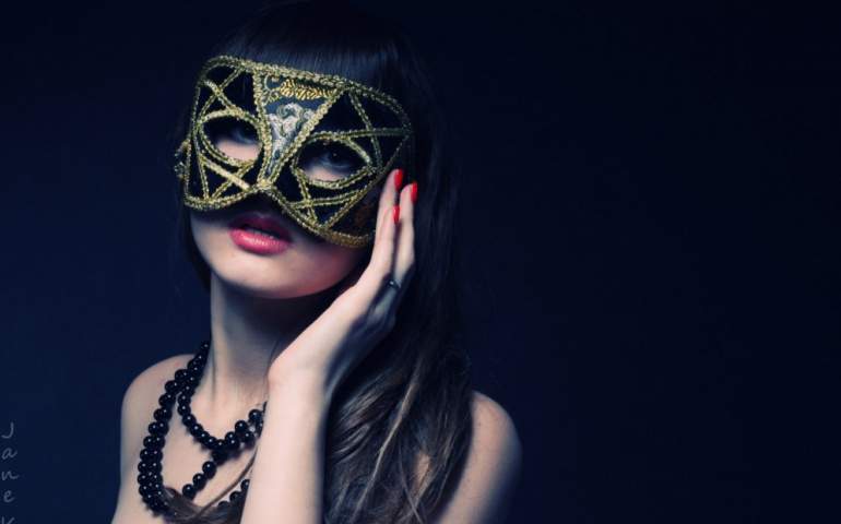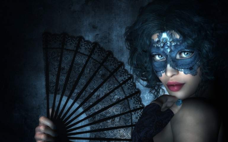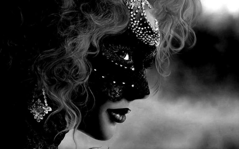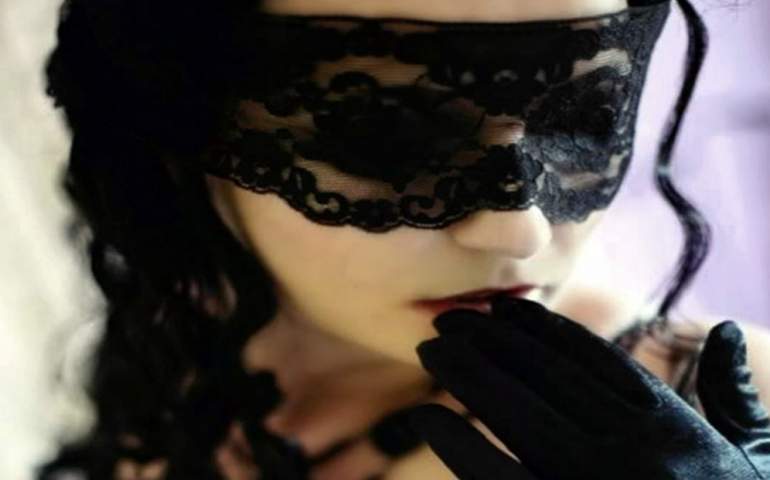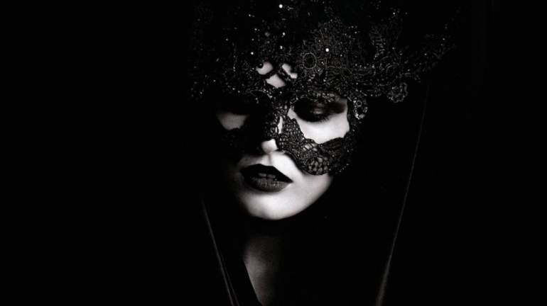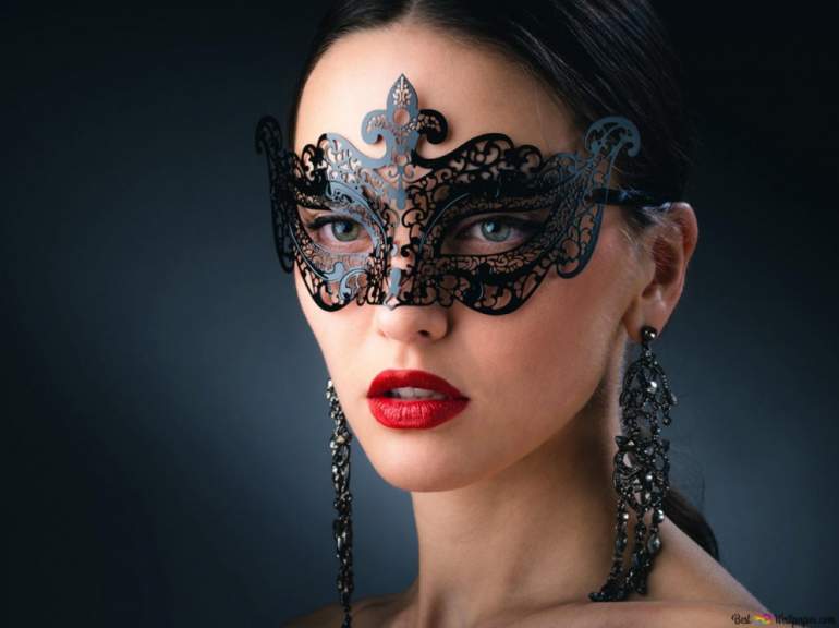 Девушка красавица в темной маске.