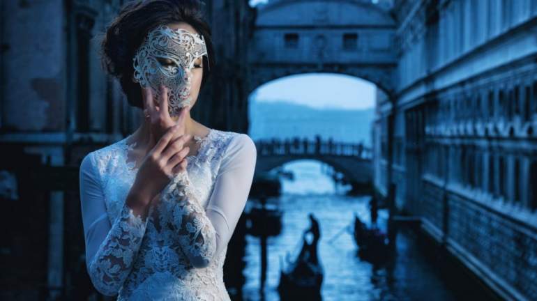 Девушка красавица в белоснежной маске.