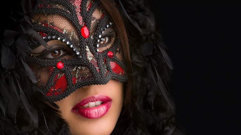 Девушка красавица в ажурной маске.