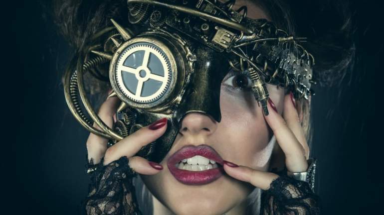 Девушка красавица в маске стимпанк.
