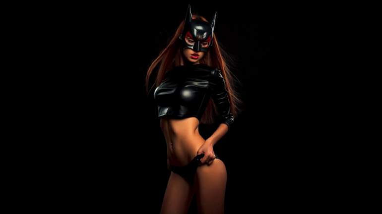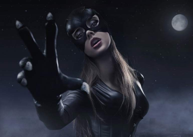 Девушка красавица в маске кошки.