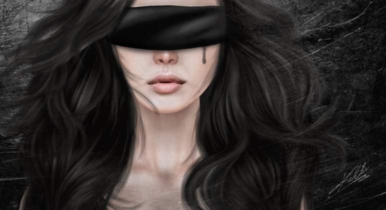 Девушка красавица сповязко на глазах.