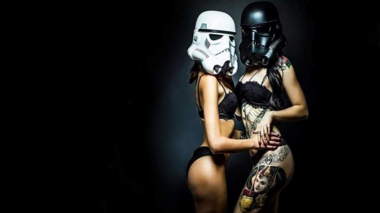 Девушка красавица в шлеме штурмовика.
