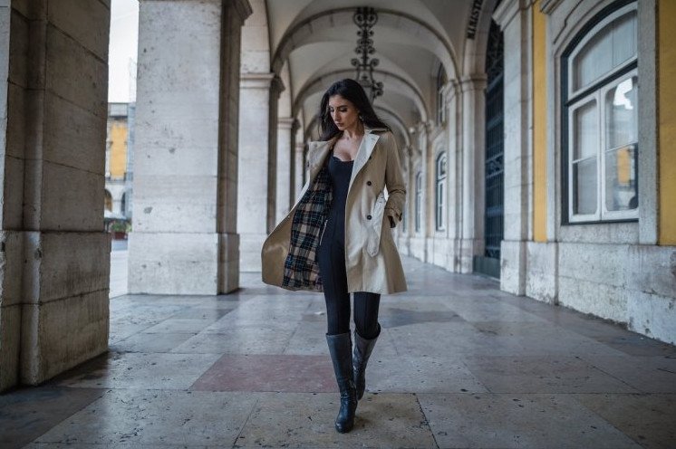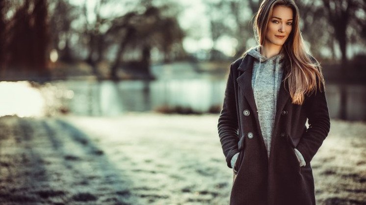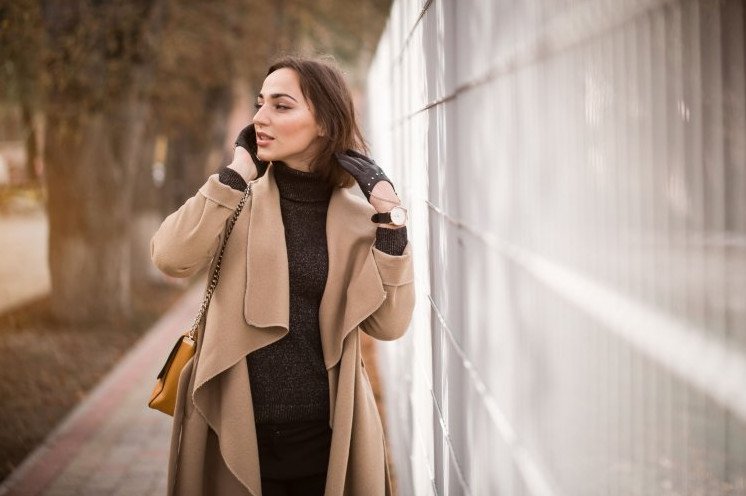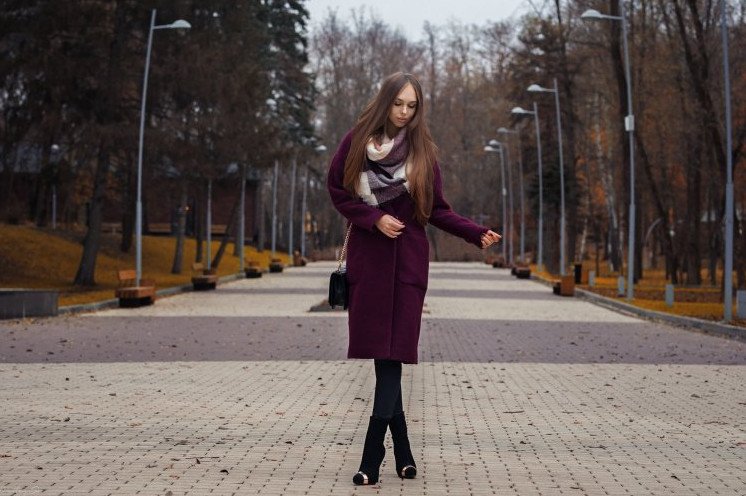 Красивая девушка в длинном пальто.