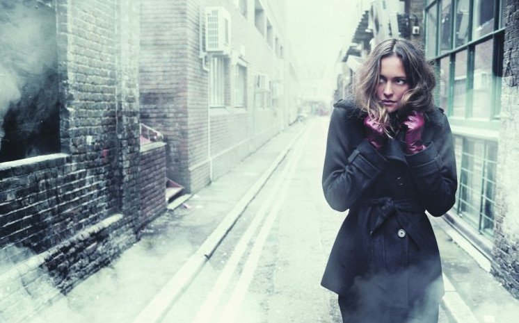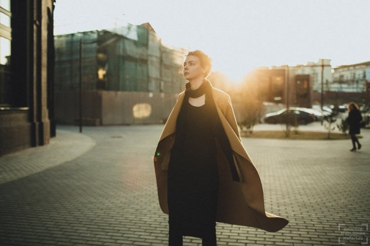 Девушка в плаще.