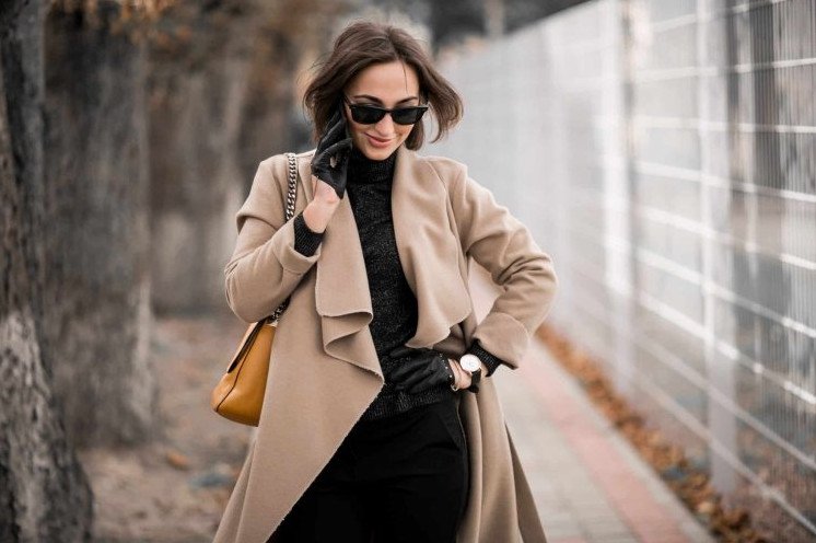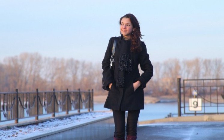 Красивая девушка в черном пальто.