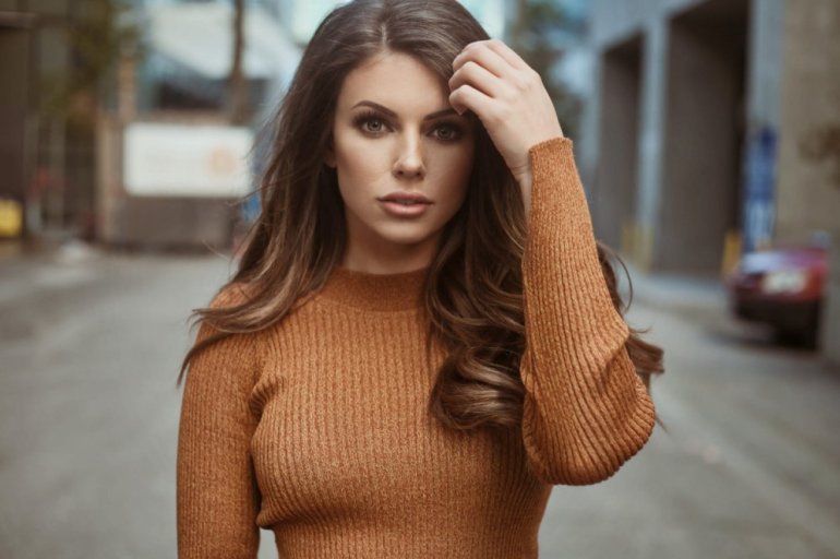 Богатая девушка красавица в свитере.