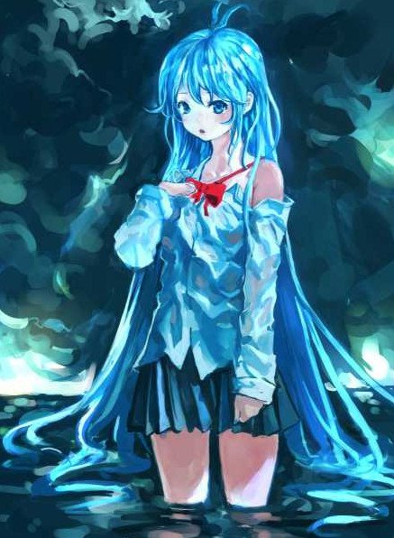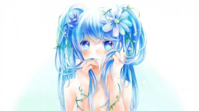 Картинки Аниме с голубыми волосами.