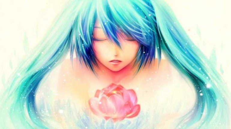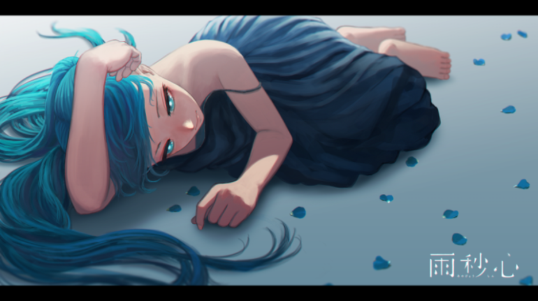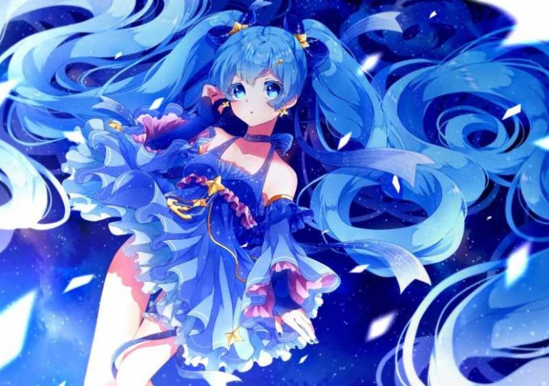 Хатсуне Мику с голубыми волосами.