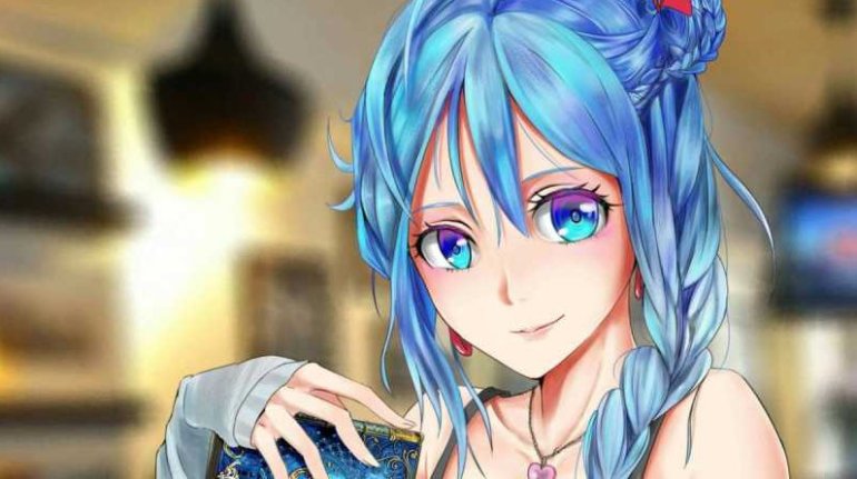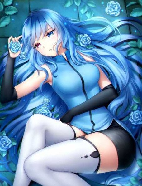 Картинки Аниме тян с голубыми волосами.