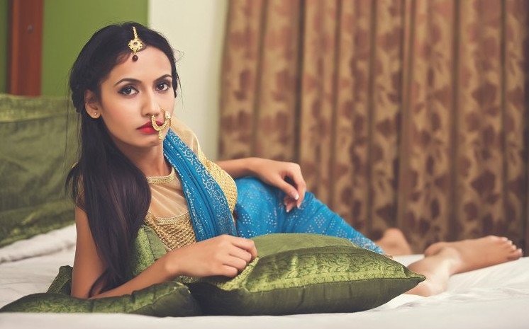 Соблазнительная черноволосая индийская симпатичная девушка красавица.