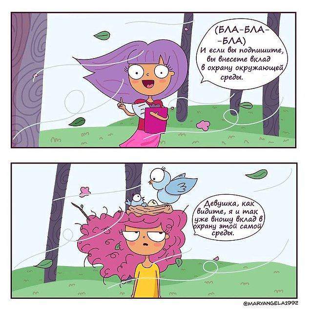 25-летняя иллюстратор Анжела Ваз из Бангалора, Индия, знает, как живут девушки с кудрявыми волосами. Она говорит, что не променяла бы свои кудри на прямые волосы, но кудри создают столько проблем! Именно об этом будут следующие десять комиксов.